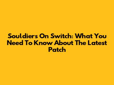 Souldiers On Switch: What You Need To Know About The Latest Patch