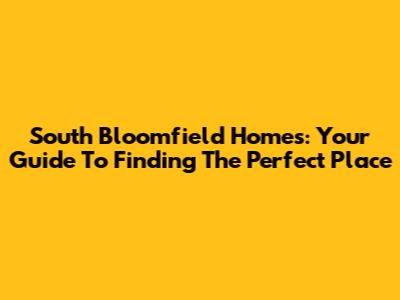 South Bloomfield Homes: Your Guide To Finding The Perfect Place