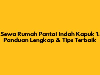 Sewa Rumah Pantai Indah Kapuk 1: Panduan Lengkap & Tips Terbaik