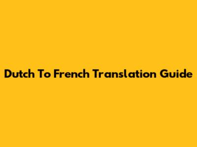 Dutch To French Translation Guide
