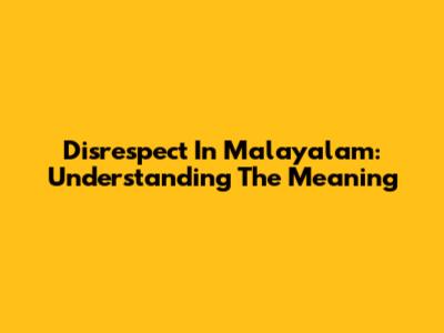 Disrespect In Malayalam: Understanding The Meaning