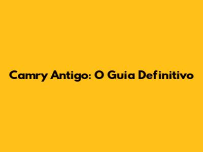 Camry Antigo: O Guia Definitivo