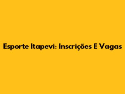 Esporte Itapevi: Inscrições E Vagas