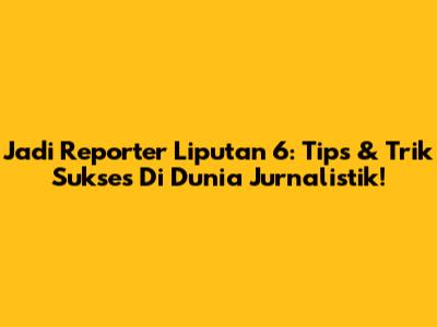 Jadi Reporter Liputan 6: Tips & Trik Sukses Di Dunia Jurnalistik!
