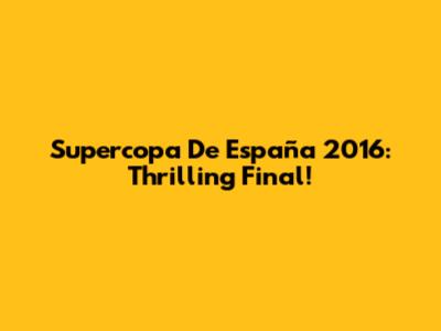 Supercopa De España 2016: Thrilling Final!