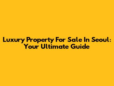 Luxury Property For Sale In Seoul: Your Ultimate Guide