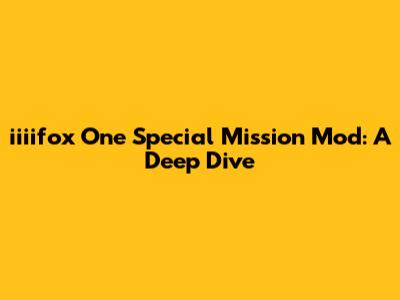 Iiiifox One Special Mission Mod: A Deep Dive
