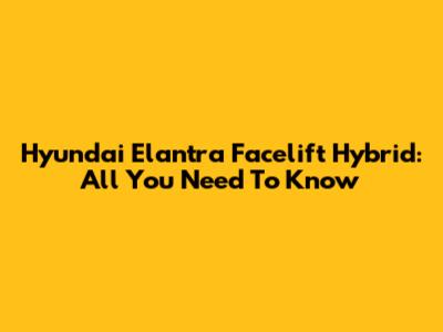 Hyundai Elantra Facelift Hybrid: All You Need To Know