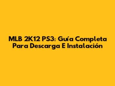 MLB 2K12 PS3: Guía Completa Para Descarga E Instalación