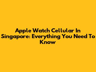 Apple Watch Cellular In Singapore: Everything You Need To Know