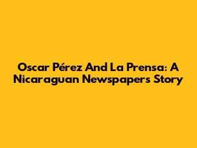 Oscar Pérez And La Prensa: A Nicaraguan Newspaper's Story