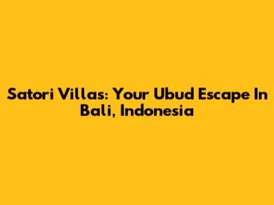 Satori Villas: Your Ubud Escape In Bali, Indonesia