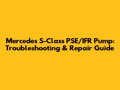 Mercedes S-Class PSE/IFR Pump: Troubleshooting & Repair Guide
