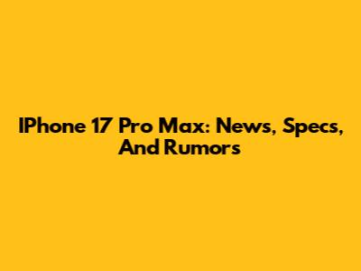 IPhone 17 Pro Max: News, Specs, And Rumors