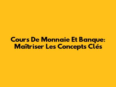 Cours De Monnaie Et Banque: Maîtriser Les Concepts Clés