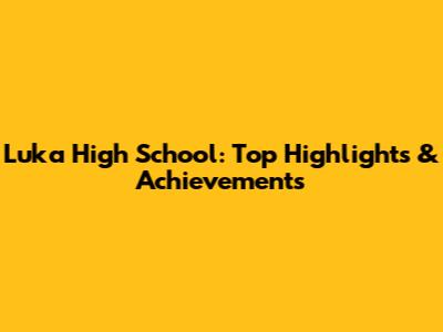 Luka High School: Top Highlights & Achievements