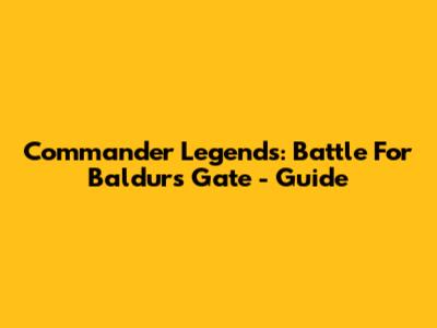 Commander Legends: Battle For Baldur's Gate - Guide