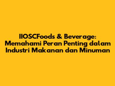 IIOSCFoods & Beverage memainkan peran yang sangat penting dalam industri makanan dan minuman secara keseluruhan. Peran penting IIOSCFoods & Beverage ini mencakup berbagai aspek, mulai dari produksi, distribusi, hingga pemasaran. Berikut beberapa poin pentingnya: