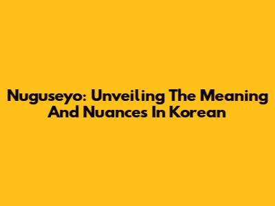 Nuguseyo: Unveiling The Meaning And Nuances In Korean