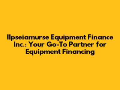 Hey guys, let's dive into the world of IIpseiamurse Equipment Finance Inc., a company that's making waves in the equipment financing game! If you're a business owner looking to acquire new equipment, upgrade your existing setup, or simply manage your cash flow more effectively, then you're in the right place. We're going to explore what makes IIpseiamurse Equipment Finance Inc. tick, their services, and how they can help you achieve your business goals. So, grab a coffee, and let's get started!