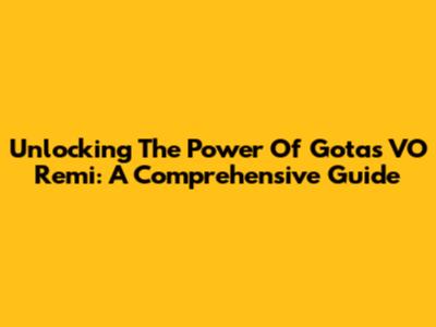 Unlocking The Power Of Gotas VO Remi: A Comprehensive Guide