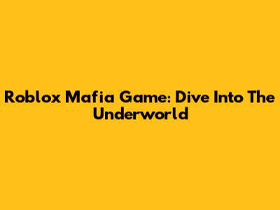 Roblox Mafia Game: Dive Into The Underworld