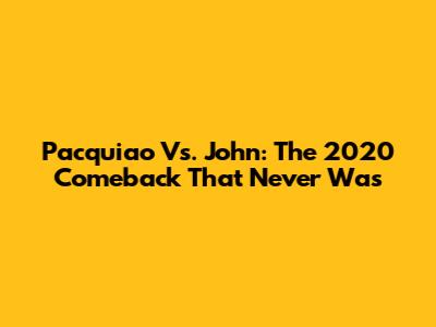 Pacquiao Vs. John: The 2020 Comeback That Never Was