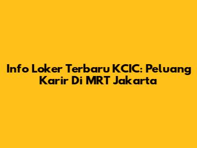 Info Loker Terbaru KCIC: Peluang Karir Di MRT Jakarta