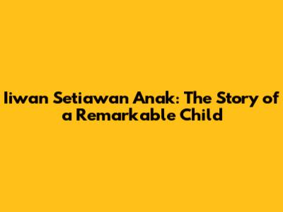 At its core, the story of Iiwan Setiawan Anak is about a young person with extraordinary qualities. While specific details about their age, background, and achievements may vary depending on the most current information available, the essence remains the same: Iiwan Setiawan Anak is a child who stands out due to their unique talents, exceptional character, or significant contributions. It’s important to note that the details might evolve as Iiwan Setiawan Anak grows and continues to develop, but the underlying theme of their remarkable nature persists.