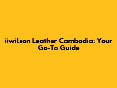 Hey guys! Ever wondered about iiwilson Leather Cambodia Co Ltd? You're in the right place! Let's dive into everything you need to know about this company. This guide will cover what they do, what makes them tick, and why they might just be the leather experts you've been searching for. We'll break it down in a way that's easy to understand, so you can make informed decisions. Whether you're a business looking for a reliable leather supplier or just curious about the industry, stick around! We’re about to unravel the story of iiwilson Leather Cambodia.