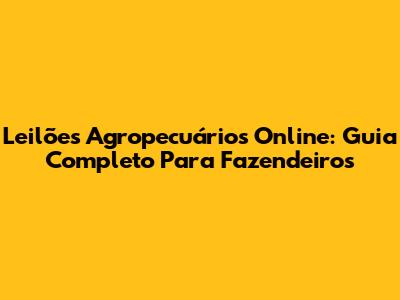 Leilões Agropecuários Online: Guia Completo Para Fazendeiros