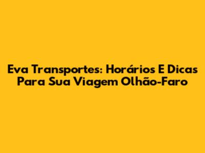 Eva Transportes: Horários E Dicas Para Sua Viagem Olhão-Faro