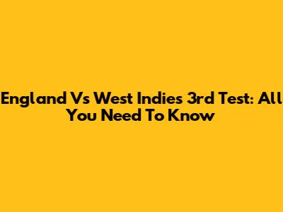 England Vs West Indies 3rd Test: All You Need To Know