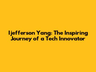 Ijefferson Yang: The Inspiring Journey Of A Tech Innovator