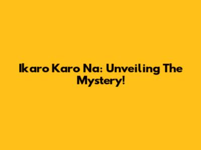 Ikaro Karo Na: Unveiling The Mystery!