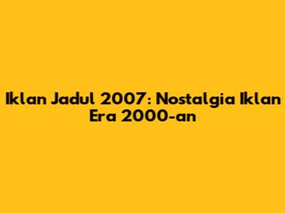 Iklan Jadul 2007: Nostalgia Iklan Era 2000-an