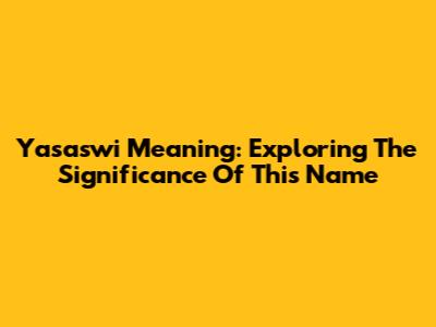 Yasaswi Meaning: Exploring The Significance Of This Name