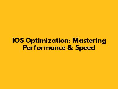 IOS Optimization: Mastering Performance & Speed