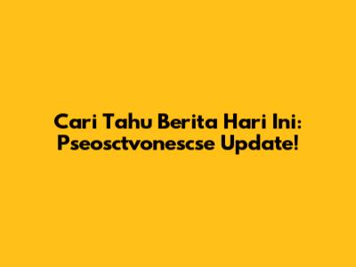 Cari Tahu Berita Hari Ini: Pseosctvonescse Update!