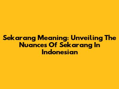 Sekarang Meaning: Unveiling The Nuances Of 'Sekarang' In Indonesian