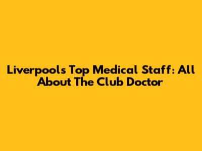 Liverpool's Top Medical Staff: All About The Club Doctor