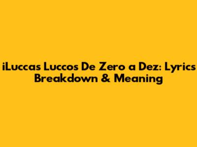 Hey music lovers! Ever found yourself completely captivated by a song? Well, if you're anything like me, you've probably been there. Today, we're diving deep into the mesmerizing world of iLuccas Lucco's hit song, "De Zero a Dez". This track isn't just a catchy tune; it's a journey through emotions, relationships, and the rollercoaster of love. So, grab your headphones, get comfy, and let's unravel the lyrics of "De Zero a Dez" together. We'll explore the meaning behind the words, the emotions they convey, and why this song has resonated with so many people around the world. Let's get started, shall we?