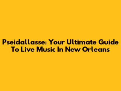 Pseidallasse: Your Ultimate Guide To Live Music In New Orleans