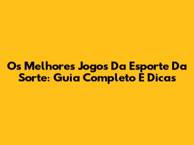 Os Melhores Jogos Da Esporte Da Sorte: Guia Completo E Dicas