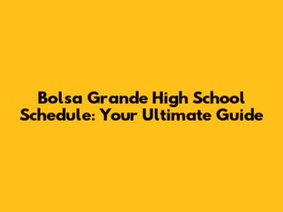 Bolsa Grande High School Schedule: Your Ultimate Guide
