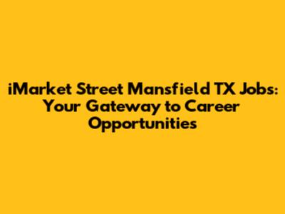 Are you on the hunt for iMarket Street Mansfield TX jobs? Well, you've landed in the right spot! This bustling area is a hub of opportunity, and we're here to guide you through the ins and outs of finding the perfect job. Whether you're a seasoned professional or just starting your career journey, Mansfield, Texas, offers a diverse range of employment options. Let's dive into what makes iMarket Street a prime location for job seekers and how you can snag your dream role.