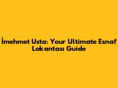 Hey food lovers! Ready to dive into the heart of Turkish cuisine? Today, we're talking about İmehmet Usta, a true gem in the world of esnaf lokantası (tradesmen's restaurants). These aren't your average eateries, guys. They're where you go to get a real taste of authentic, home-style Turkish food, cooked with love and served with a side of friendly chatter. If you are looking for a place that serves hearty meals, then you are in the right place. İmehmet Usta, with its rich culinary history and dedication to quality, makes it a must-visit for anyone craving an unforgettable dining experience. The main keyword here, of course, is İmehmet Usta. So, let's break down what makes İmehmet Usta so special. What kind of dishes you can expect, and why it should be at the top of your list the next time you are craving some good food. İmehmet Usta is not just a restaurant; it's a cultural experience. It's where you'll find the true spirit of Turkish hospitality, where every dish tells a story, and every bite is a celebration of flavor. Keep reading to know more about the food. You will know what makes it unique, what is the best dish and other details to make you more familiar with it.
