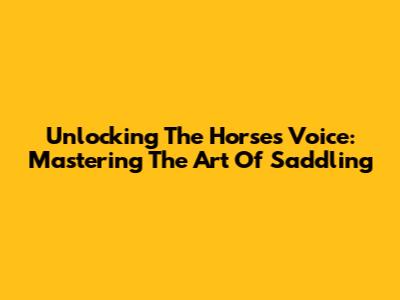 Unlocking The Horse's Voice: Mastering The Art Of Saddling