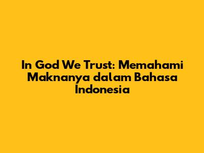 Semoga artikel ini memberikan pemahaman yang lebih baik tentang "In God We Trust bahasa Indonesianya" dan bagaimana frasa ini relevan dalam konteks Indonesia. Mari kita terus merenungkan makna mendalam dari frasa ini dan mengaplikasikannya dalam kehidupan kita sehari-hari.