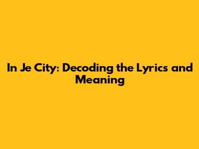 Unpacking the Lyrics of "In Je City"